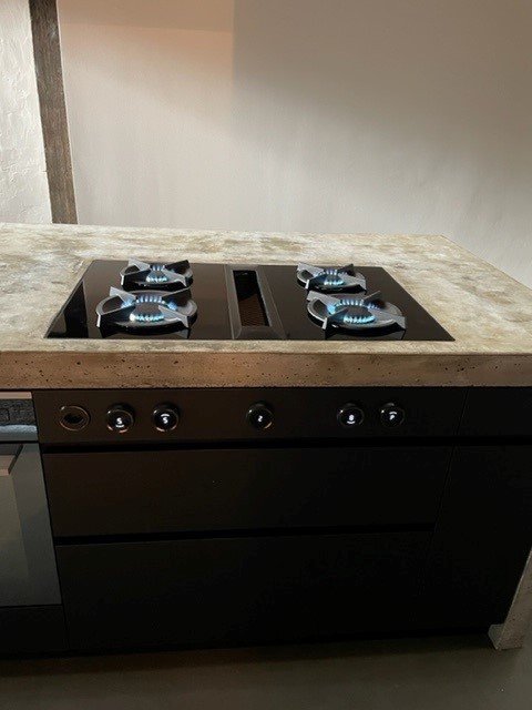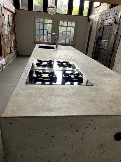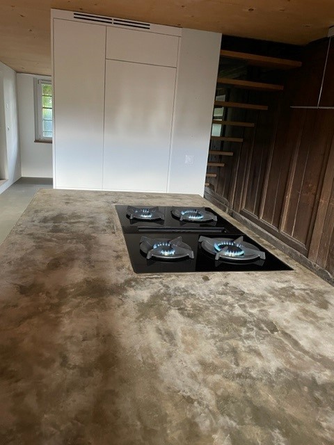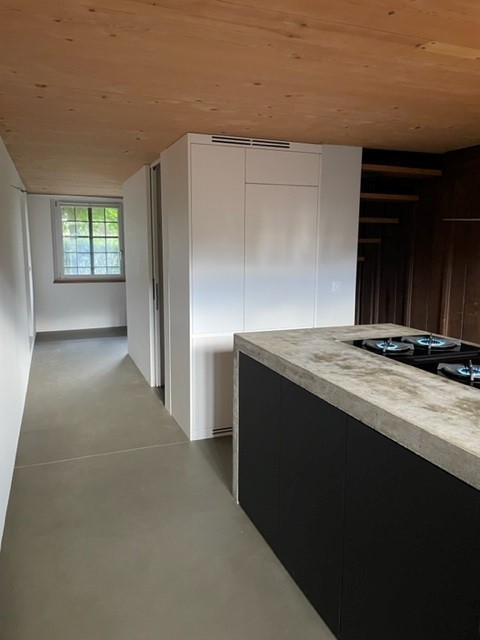 Neue Betonküche vor der Realisierung in historischem Bauernhaus