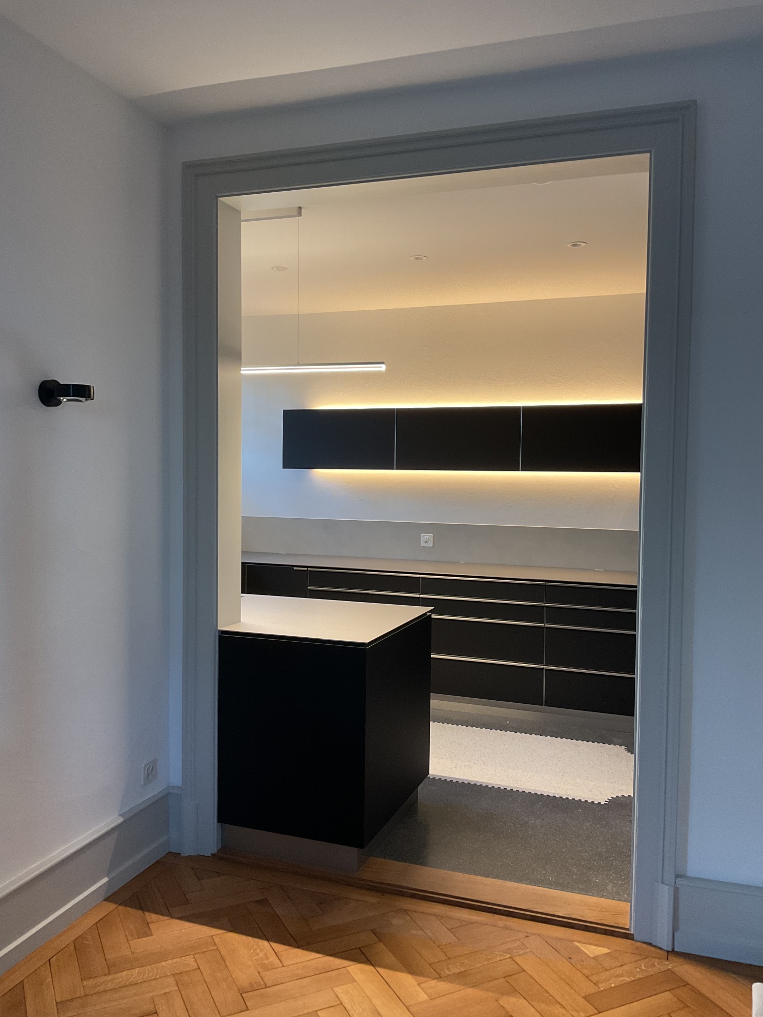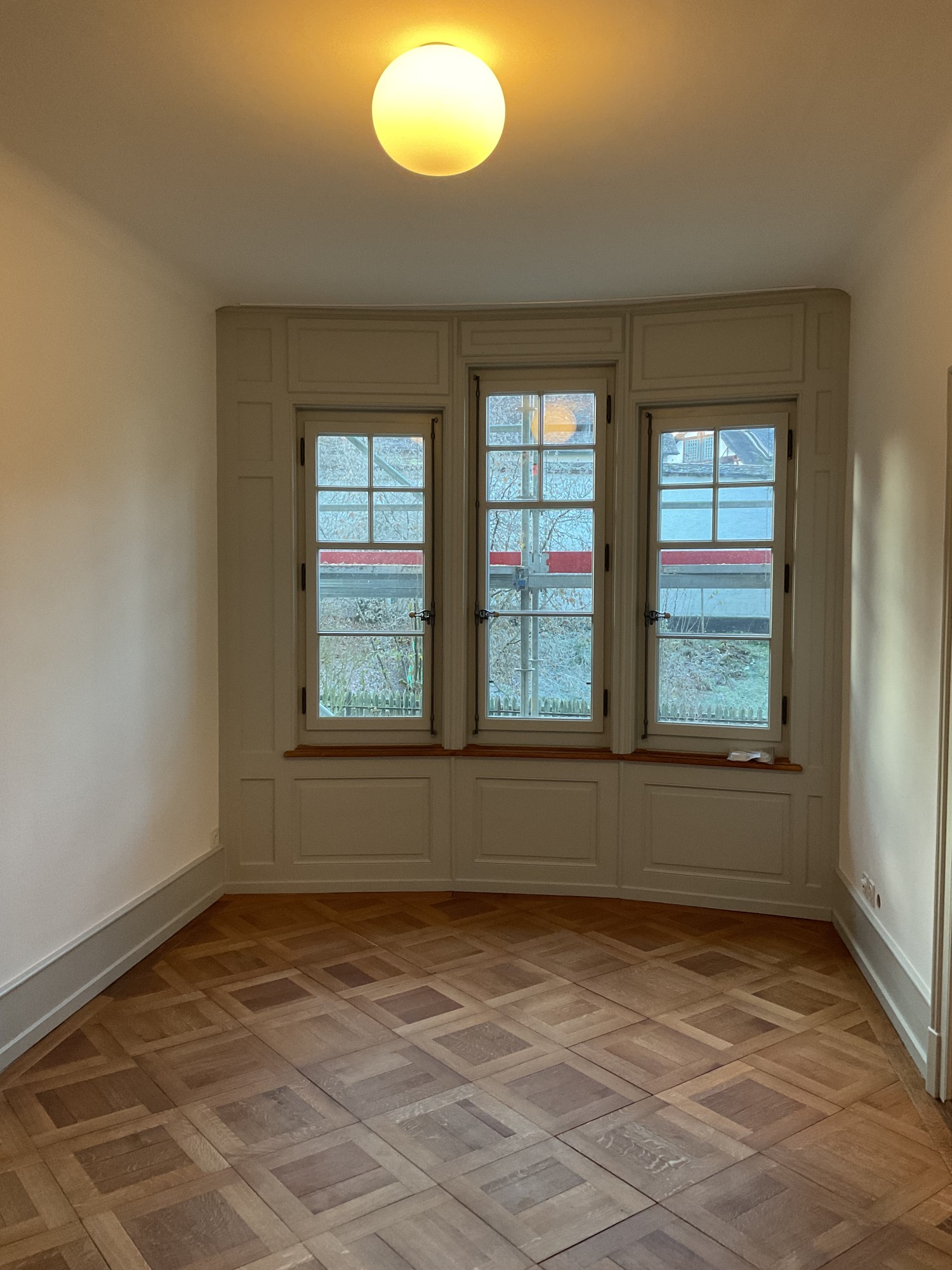 In verschiedenen Etappen werden die Wohnungen auf eine zeitgemässe Mischung zwischen alt und neu umgebaut. Die aufwendigen denkmalpflegerische Details und Handwerkskunst konnte wieder hergestellt werden. Eine hohe handwerkliche Fertigkeit wurde auch heute gefordert und konnte zu aller Zufriedenheit erreicht werden!